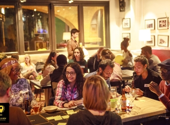 Luister je graag? Dan is The Grand Pillow Society een leuk netwerk, waar je op een ontspannen manier nieuwe mensen ontmoet. The Grand Pillow Society heeft een programma in het Grand Theater aan de Grote Markt, vol met verhalen, gedichten en liedjes waarnaar geluisterd kan worden in een intieme huiskamersetting. Het publiek kan zoals de naam al aangeeft op een kussentje rondom de artiest zitten om te luisteren. Hierdoor wordt het gevoel van een huiskamer en een warm netwerk gecreëerd. Voor de shows beginnen, is het ook mogelijk om aan te schuiven bij een diner. Dit diner is gecreëerd om de mensen die de Grand Pillow Society bezoeken dichter tot elkaar te brengen. Zoals ze zelf zeggen, dit diner is om de avond te beginnen met een volle buik en nieuwe vrienden. Bezoekers staan dus open om nieuwe mensen te ontmoeten! Mensen omschrijven de activiteiten en het diner als een hechte, relaxte omgeving. Als jij een passie hebt voor muziek, verhalen of gedichten is dit een leuke activiteit om eens heen te gaan en nieuwe mensen te ontmoeten. Zoek vooral in de agenda van het Grand Theater voor het aankomende Pillow Society event!