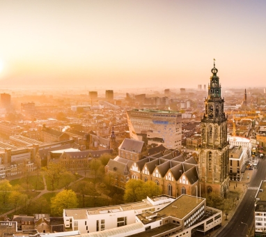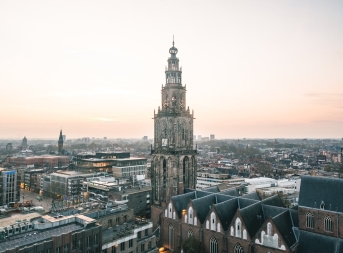 Aan de voet van de Martinitoren vind je de stad Groningen. De hoofdstad van de provincie Groningen en de zesde stad van Nederland. De stad staat bekend om haar eeuwenoude universiteit. De Rijksuniversiteit Groningen is in meer dan 400 jaar tijd uitgegroeid tot een van de grootste universiteiten van Nederland met meer dan 50.000 studenten.